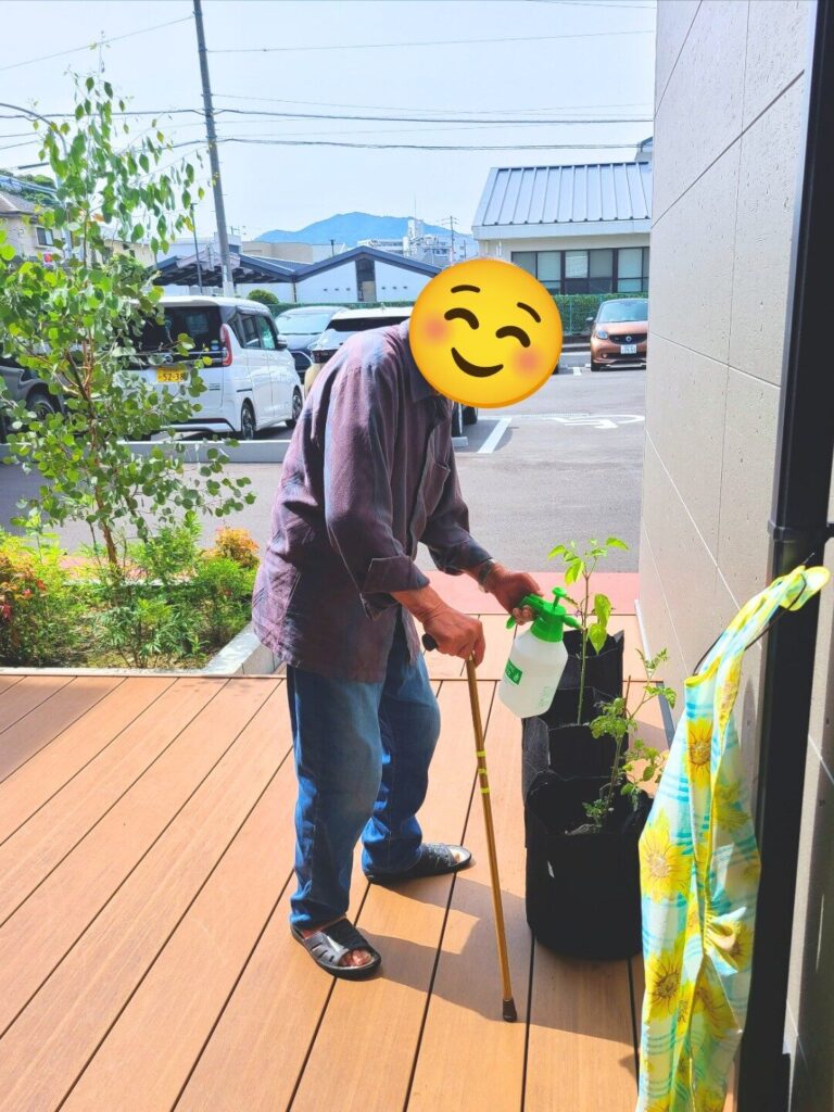 入居者Mさんのご希望で、ビーズの家のウッドデッキにてお野菜を作り始めました。