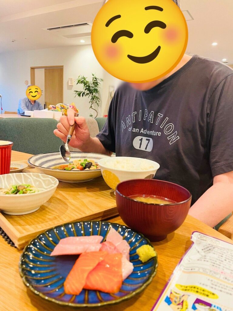 入居者のYMさんが雑談の中でお話してくださいました。住宅の有料サービスで買いに行くというご希望でしたが、お一人で買ったらお刺身は高いし1種類とかしか購入できない。なにか良い方法はないだろうかと考えました。