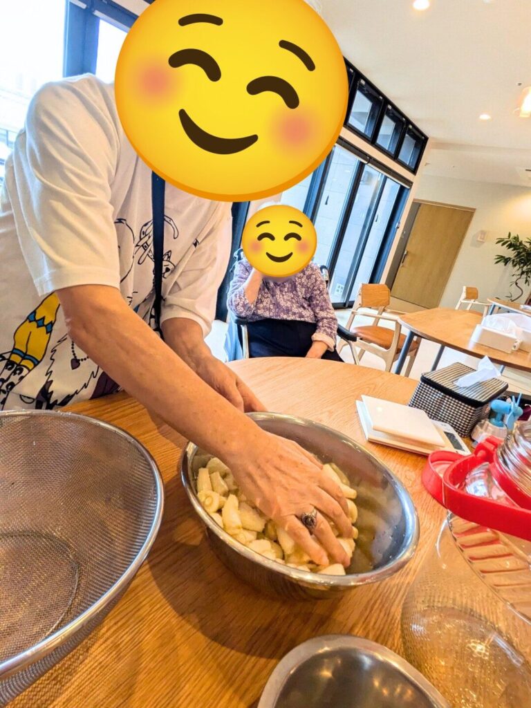 入居者T さんのご希望で、みんなでらっきょを漬けました。